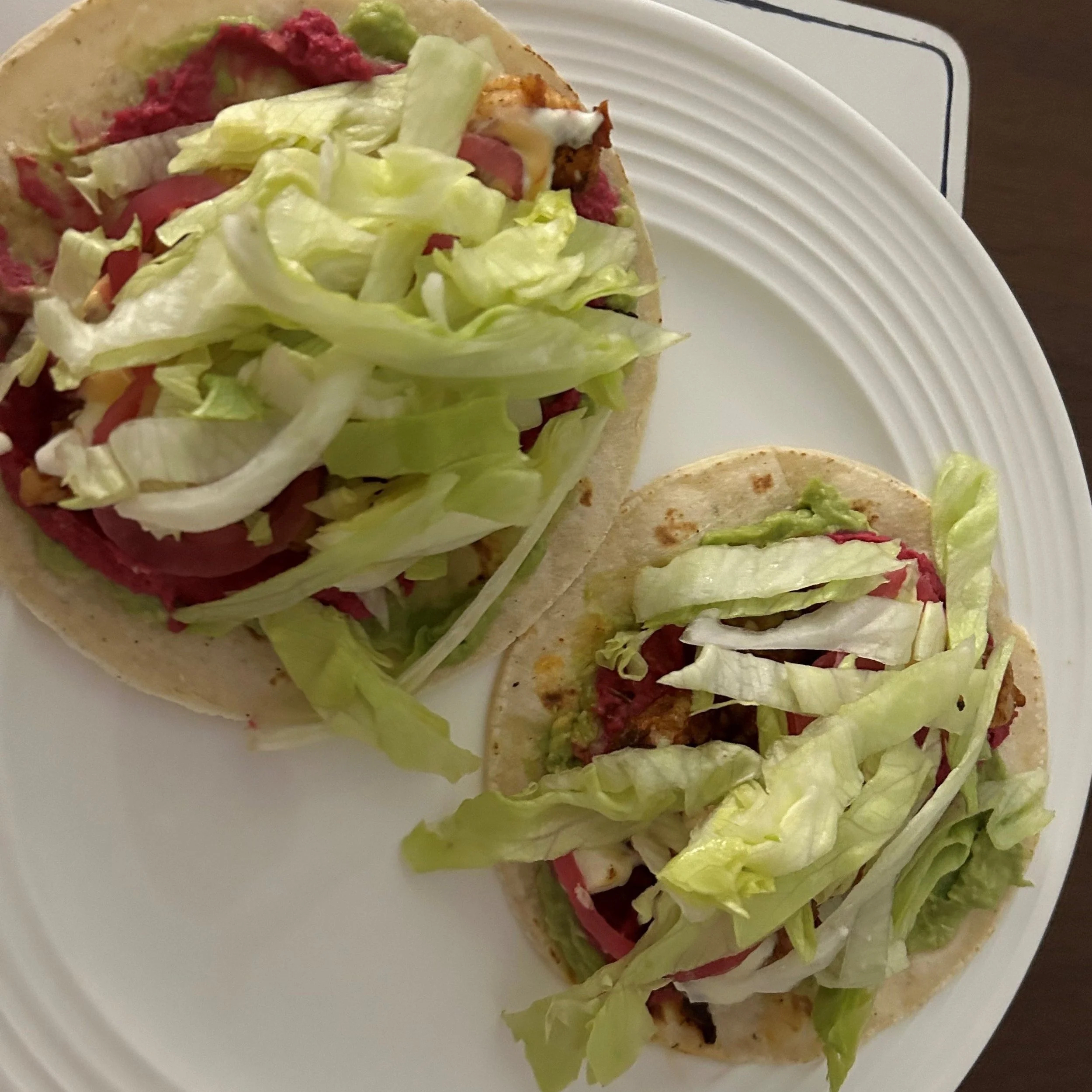 Once your fish is cooked, place your tacos in a frying pan on a high heat according to packet instructions (you could also place them in the oven if it’s on). They only need 30-60 seconds per side on a high heat.