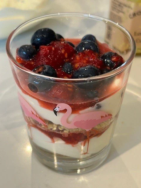 Add a layer of mascarpone cream, followed by a layer of berries.